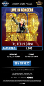 Exclusive 0nline Presale- Live In Concert ROD STEWART/ Hard Rock Live (Hollywood)